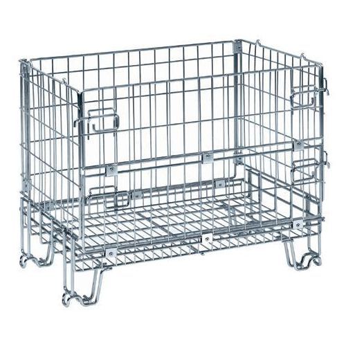 El-galvaniserte i 3 modeller. Med 1 halvhengt grind på den ene langsiden. Kan stables. Leveres umontert. Kan stables inntil fire stykker i høyden med maks. belastning i hver enhet. Produsert i EU