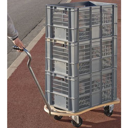 | Varenavn | Tralle med håndtak, Kapasitet: 300 kg, Totallengde: 800 mm, Totalbredde: 400 mm, Hjul, Ø: 100 mm |