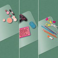 - Transparent skrivebordsmatte som holder arbeidsflaten ren og organisert.