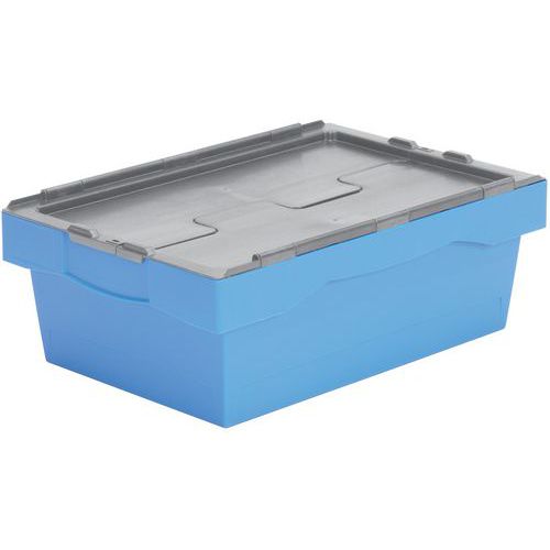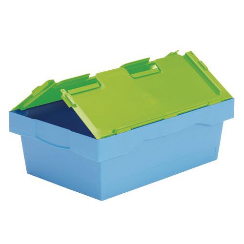 Fargene på lokket gjør det mulig å se hvor i logistikkflyten de er. Multifunksjonell: kan brukes i både manuell og automatisert håndtering. Lokk som kan låses og plomberes for å sikre innholdet. Sparer plass: tomme kasser kan stables i hverandre. Perfekt for industri, detaljhandler og engroshandel. Laget i EU Maksimal last (kg) : 25