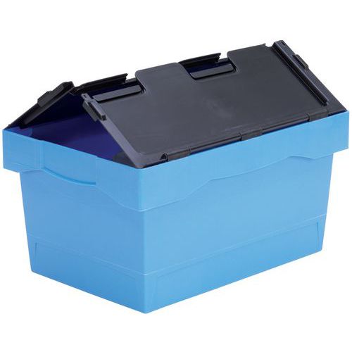 Fargene på lokket gjør det mulig å se hvor i logistikkflyten de er. Multifunksjonell: kan brukes i både manuell og automatisert håndtering. Lokk som kan låses og plomberes for å sikre innholdet. Sparer plass: tomme kasser kan stables i hverandre. Perfekt for industri, detaljhandler og engroshandel.