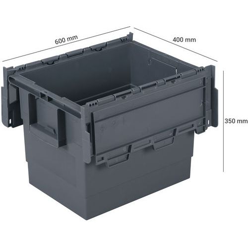 | Varenavn | Transportkasse Integra 600 mm, Volum: 64 L, Materiale: Plast, Totalhøyde: 350 mm, Totalbredde: 400 mm |