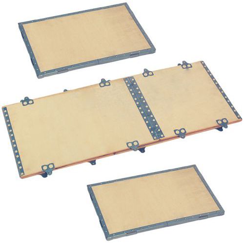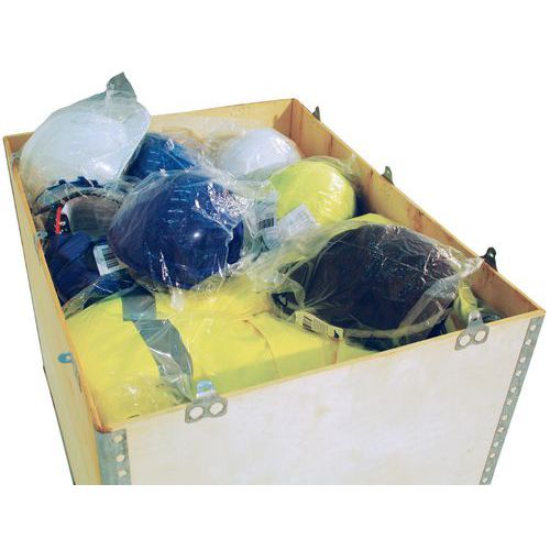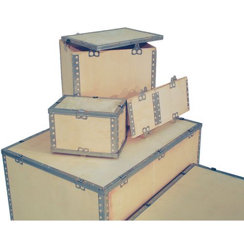 - Transportkasse i tre med vinkelbeskyttelse av galvanisert stål.
