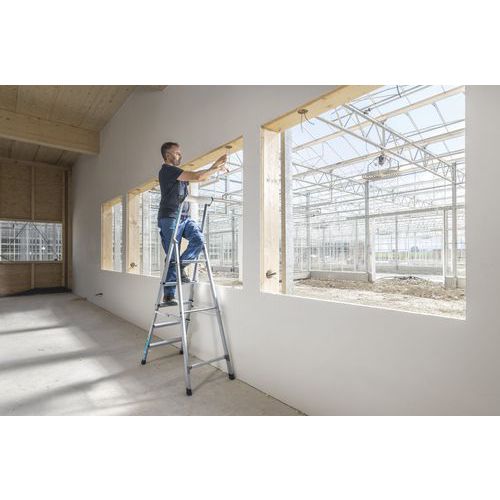- 80 mm trinnbredde og dobbeltsidig festestag øker stabiliteten, og gjør at du orker å stå lenger i stigen.