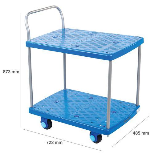 | Varenavn | Trillebord av plast 150 kg, Kapasitet: 150 kg, Totalhøyde: 873 mm, Totalbredde: 485 mm, Totallengde: 723 mm |