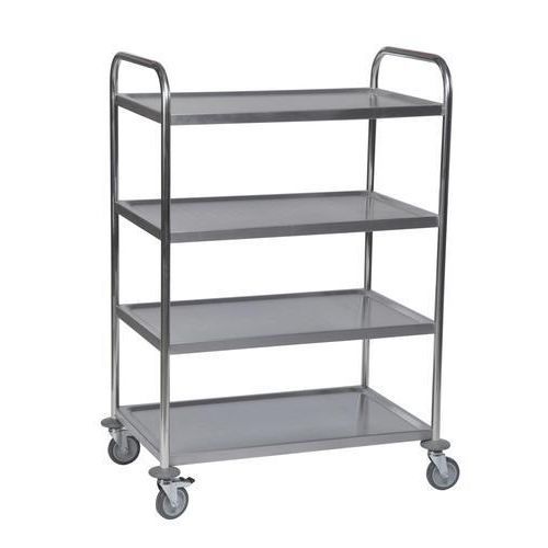 Rustfri vogn med lydabsorberingsmatte under hver hylleplate. Ikke egnet i rent roms miljøer. Leveres umontert.