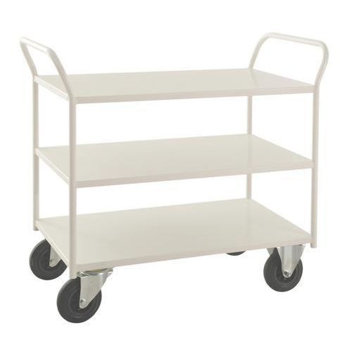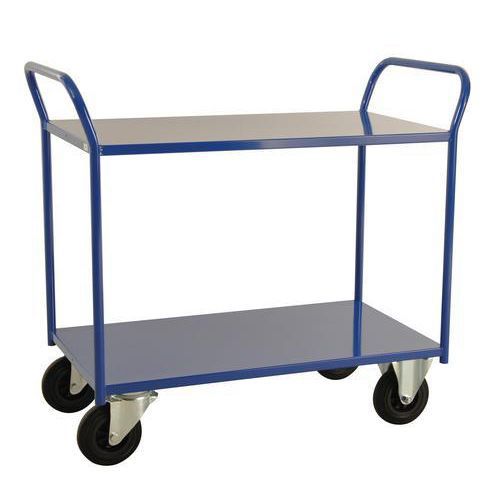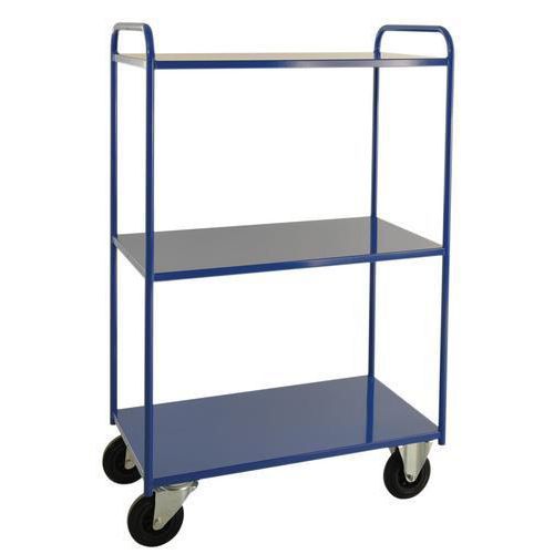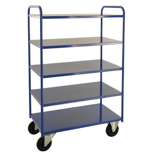 Tung modell - Kapasitet: 400 kg jevnt fordelt på alle hyller. Pulverlakkerte i hvit eller blå. Fåes i to bredder, 450 og 550 mm. Fåes med 2, 3 eller 5 hyller - høy eller lav modell. Helsveisede.