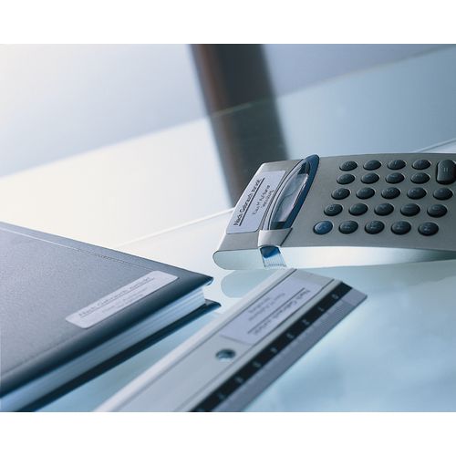 Uforfalskelig og sliteresistent tekstiletikett. Økt resistens overfor smuss, olje, UV-stråler og fuktighet. Temperaturområde: - 20 til +80 °C. Multioverflate: lakkert tre, grovt eller malt metall, glass og glatt plast.