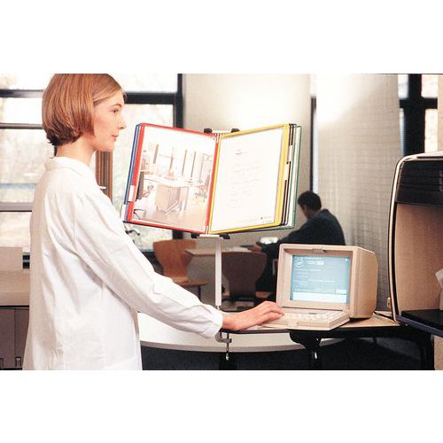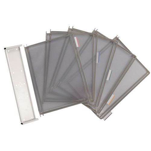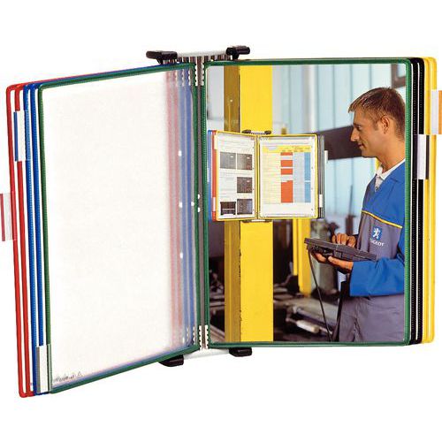 Tilpass stativet etter behov – mulighetene er uendelige! Veggstativet passer i alle rom. Gjør det enkelt å finne dokumentene dine ved hjelp av etikettholdere med forskjelligfargede innstikksark. Leveres med 10 presentasjonslommer i A4-format, 5 etikettholdere (50 mm) med ufargede og fargede innstikksark, 4 sidestøtter og monteringsmateriell. Tilbehør til Veggstativ Tarifold 10.