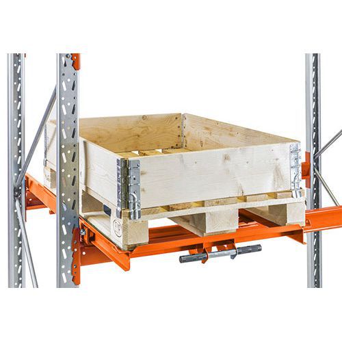 For plukkgods på pall. Gir best ergonomi ved plukking. Montering på bærebjelker eller gulv. Enheten kan låses i uttrukket tilstand og frigjøres enkelt med håndtaket. Velg monteringssett etter bjelkemål, alternativt gulvplassering. Kapasitet: 700 kg. Uttrekksenhet: 800 mm. Tilbehør til Pallestillas.