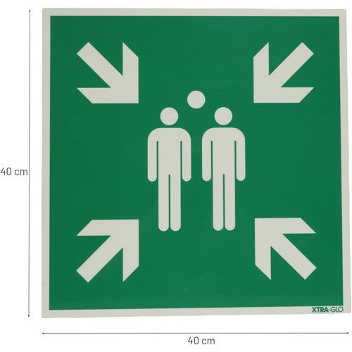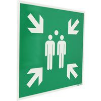 | Varenavn | Varselskilt Samlingssted, Selvklebende: nei, Stiv: ja, Skilt, form: Firkant, Type skilt: Nødevakuering |