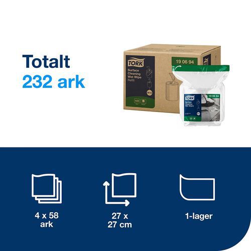 | Varenavn | Våtservietter for overflaterengjøring, W15 Refill – Tork, Farge: Hvit |