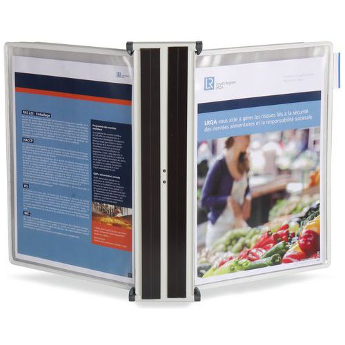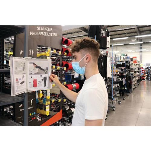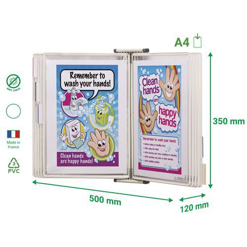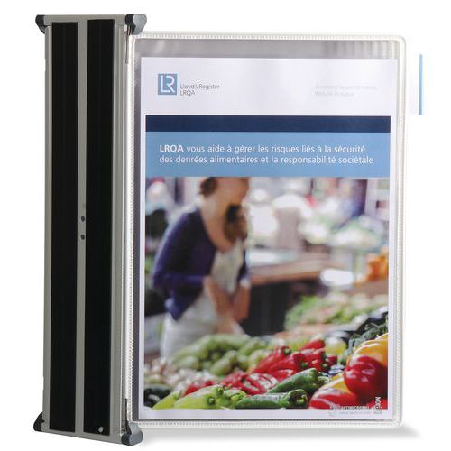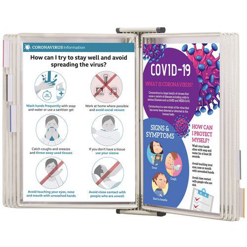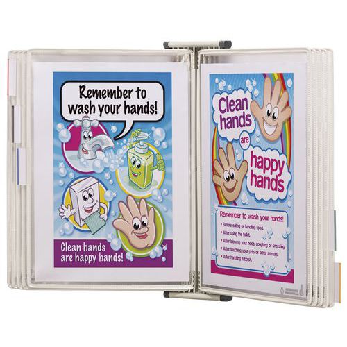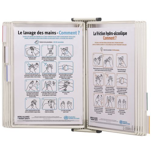 Magnetisk antimikrobiell veggholder Sterifold, særlig tilpasset miljøer med høy risiko for mikrobespredning. Utviklet for å presentere og organisere informasjon på papir på steder der bakteriespredning utgjør en risiko. Lomme utstyrt med eksklusiv Tarifold ståltrådteknologi. Utstyrt med kraftig magnetfeste. Umiddelbar montering og demontering. Hindrer krysskontaminering ved kontakt med mer enn én person. Dreper 99,9 % av mikrobene i løpet av minst 2 h (testet i laboratorium). Dokumentert virkning mot covid-19. EPA- og FDA-sertifisert for USA. Overholder EU-direktivet om biocider 98/88/EF. Produsert i EU