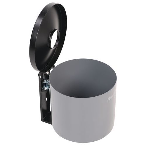 Veggmontert askebeger med brannhemmende design med slukkelokk. Galvanisert stål, korrosjonsbestandig. Rask og enkel tømming ved å tippe.