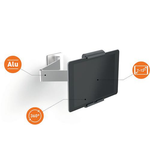 | Varenavn | Veggmontert nettbrettholder med hengslet arm, Maksimal last: 1 kg, Tykkelse: 95 mm, Materiale: Aluminium |