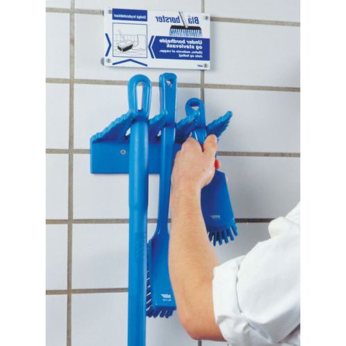 - For organisert oppbevaring av renholdsutstyr. Redskapet klemmes enkelt inn mellom de veggfaste tennene. Passer også godt til ulike typer verktøy.