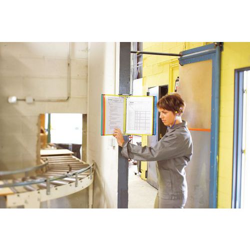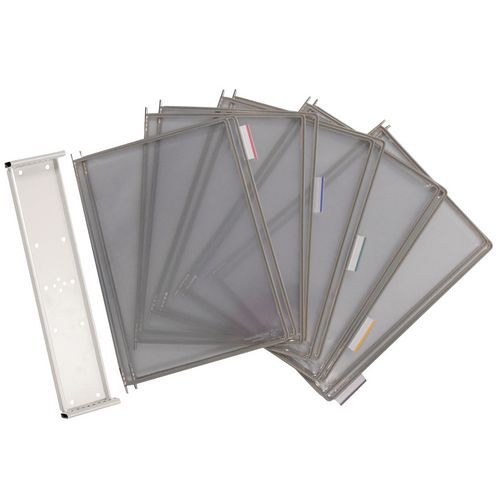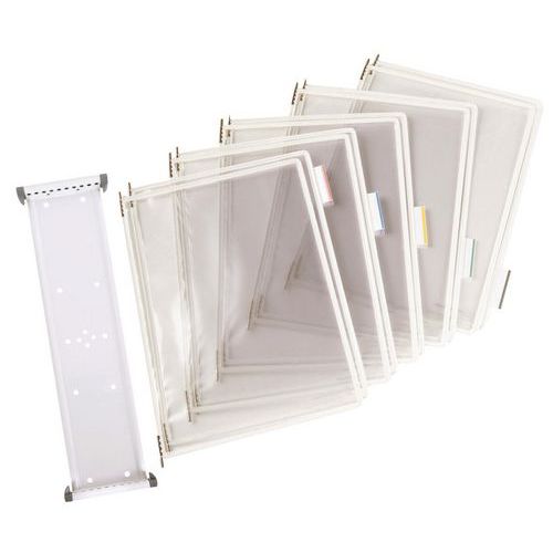 Tilpass stativet etter behov – mulighetene er uendelige! Veggstativet passer i alle rom. Gjør det enkelt å finne dokumentene dine ved hjelp av etikettholdere med forskjelligfargede innstikksark. Leveres med 10 presentasjonslommer i A4-format, 5 etikettholdere (50 mm) med ufargede og fargede innstikksark, 4 sidestøtter og monteringsmateriell.