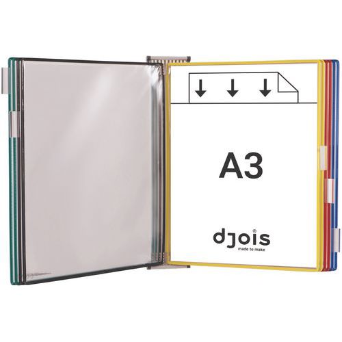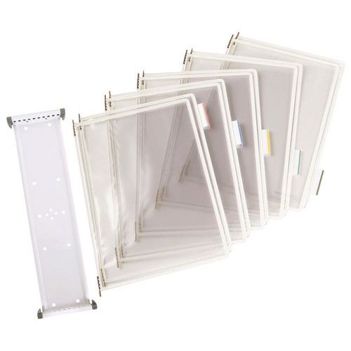 Tilpass stativet etter behov – mulighetene er uendelige! Veggstativet passer i alle rom. Gjør det enkelt å finne dokumentene dine ved hjelp av etikettholdere med forskjelligfargede innstikksark. Leveres med 10 presentasjonslommer i A3-format, 5 etikettholdere (50 mm) med ufargede og fargede innstikksark, 4 sidestøtter og monteringsmateriell.