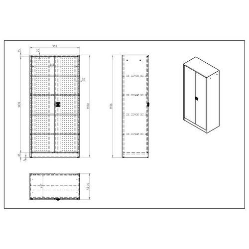 | Varenavn | Verkstedskap i metall, Maksimal last: 200 kg, Materiale: Stål, Totalhøyde: 1950 mm, Totalbredde: 950 mm |