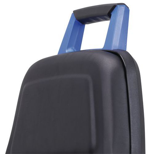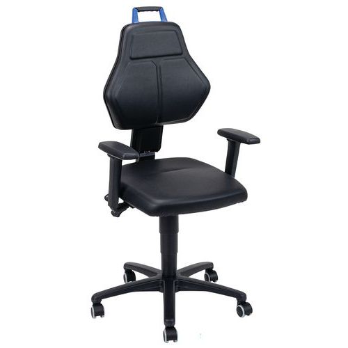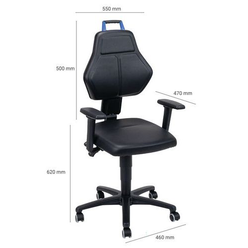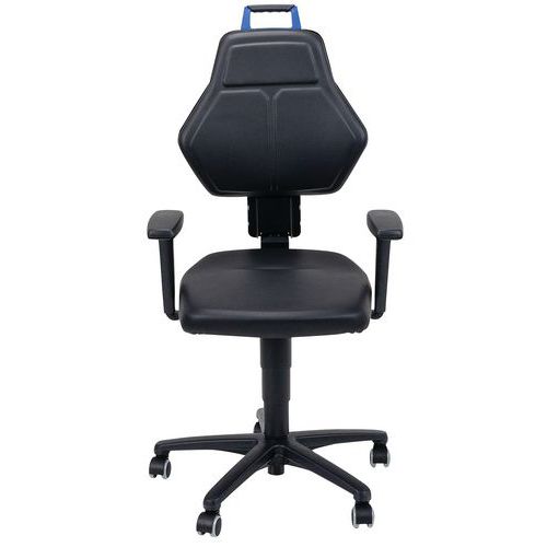 | Varenavn | Verkstedstol i kunstskinn, med hjul, Sete, materiale: Kunstlær, Ryggstøtte: ja, Modell stoler: Lav |