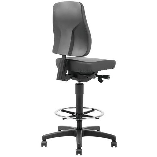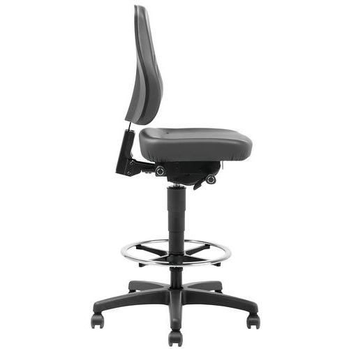 | Varenavn | Verkstedstol med høy rygg, selvlåsende svinghjul, Armlener: nei, Type fot: Hjul, Sete, materiale: Kunstlær |