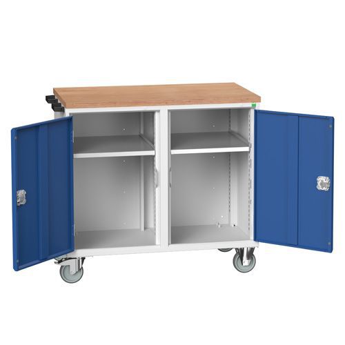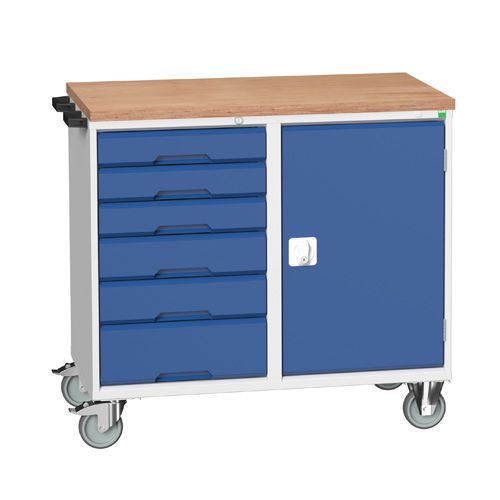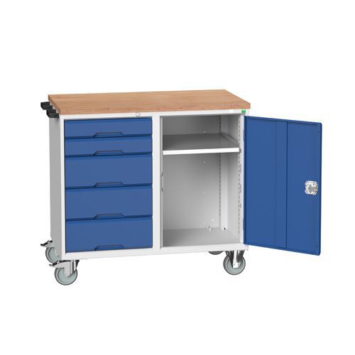 Verkstadvogner Verso med 30 mm massiv multipleksplate. Sentrallås med 2 nøkler. Kulelagrede skuffer med uttrekkssperre. Kraftige hjul hvorav to med brems. Flyttbare hylleplater av galvanisert stål.