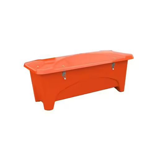 - Lokkstopp med kjetting er inkludert, og kassen finnes i fargene mosegrønn, blå, gul, oransje, svart og grå.