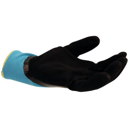 Belegg som er fem ganger sterkere enn gjeldende markedsstandard. Utmerket grep som reduserer muskeltretthet. Vanntett hanske som holder deg tørr selv i fuktige miljøer. Slitesterk: garantert kapasitet selv etter 5 vask.
