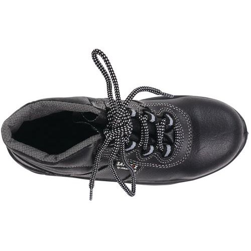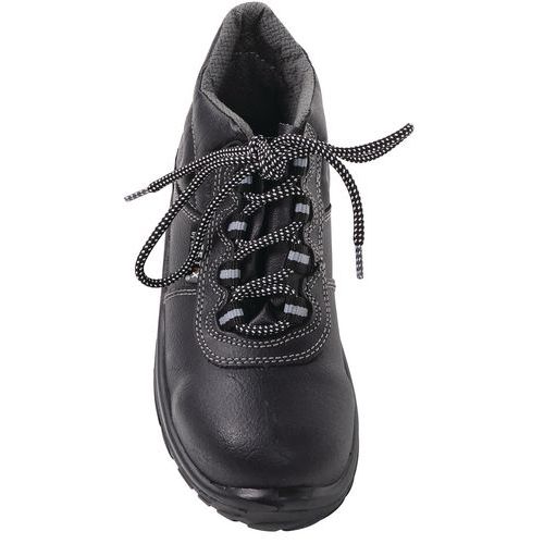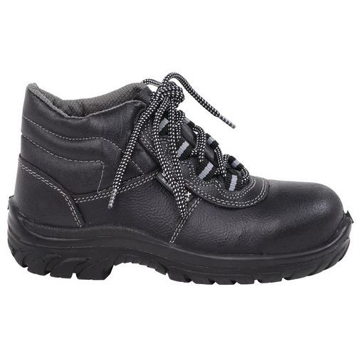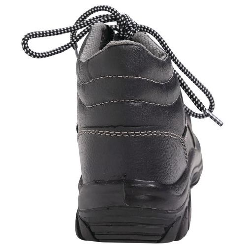 Høye vernesko med beskyttelsesspiss i polykarbonat og sklisikker såle Skaft i narvet skinn med 2,0–2,2 mm tykkelse for bedre mekanisk motstand og holdbarhet Perfekt for industrielle underlag og miljøer Lett og fleksibel såle, injisert sklisikker PU2D takket være en struktur med åpne knotter for bedre drenering av væske Avhektet hæl for forsterket sikkerhet, særlig i stiger