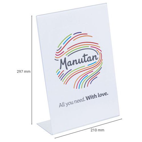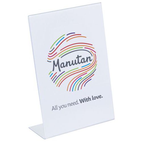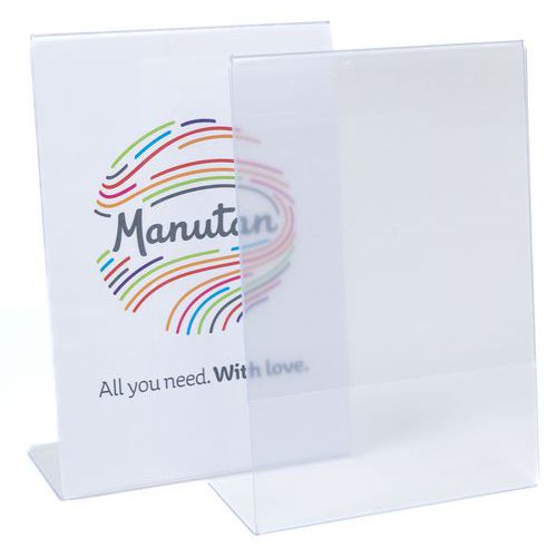 Vippet L-formet gjennomsiktig borddisplaystativ - Manutan Expert Vippet L-formet gjennomsiktig borddisplaystativ - Manutan Expert
