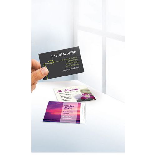 | Varenavn | Visittkort, Vekt: 185 g/m², Høyde: 54 mm, Antall deler: 250, Bredde: 85 mm |