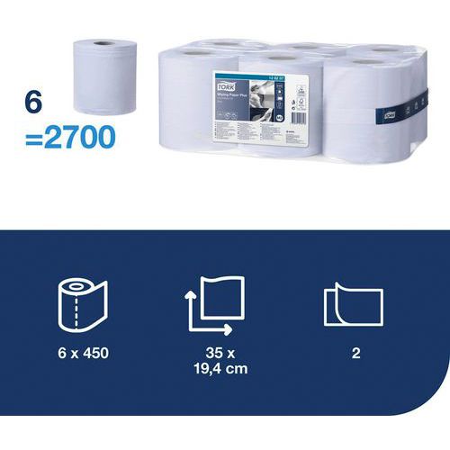 | Varenavn | Viskerklut i sentermatet rull, Farge: Blå, Type: Papirrulle, Lag: 2, Antall format/rull: 450 |