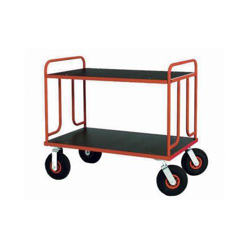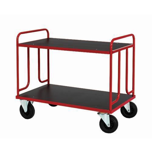 - Tralle av høy kvalitet, i rødlakkert stål, lasteplan i karosserifinér.