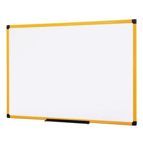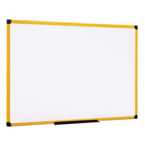 Den magnetiske tavlen skiller seg ut takket være den gule rammen. Sterk og slitesterk aluminiumsramme. Avrundede svarte PVC-hjørner gir tavlen et stilig og attraktivt utseende.