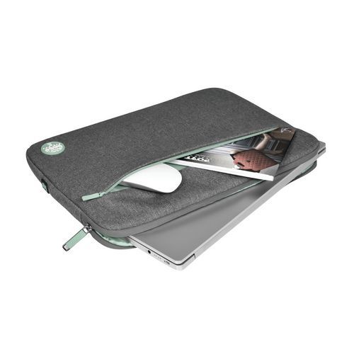 Økologisk laptopveske, ultralett og kompakt. Stor frontlomme med glidelås for rask tilgang, ideell for lader, smarttelefon, osv. Veskens struktur er helt polstret for optimal beskyttelse. Vakker finish med ultra-holdbar og elegant metallglidelås.