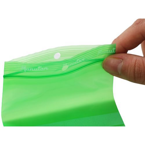 Grønn Zip-pose med glidelåsåpning og -lukking. Ribbete slør for bedre grep. Veske med hengende hull. Gir betydelig beskyttelse for produkter ved å isolere dem fra støv.